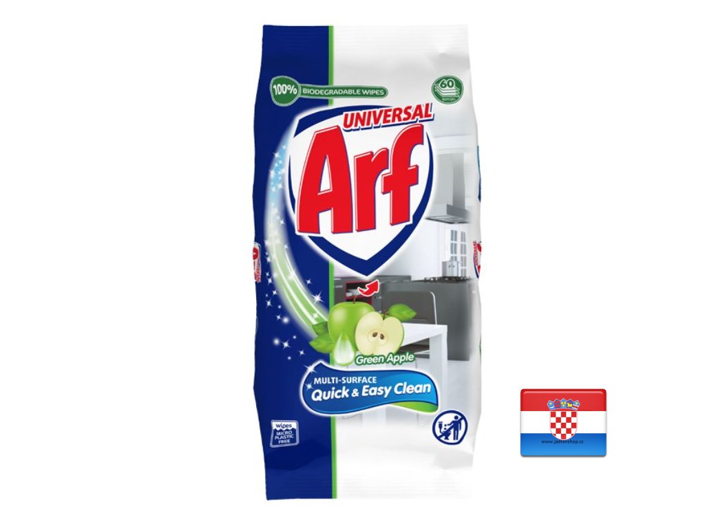 Vlhčené ubrousky Arf Universal důkladně čistí prach a nečistoty z různých omyvatelných povrchů. Vyčištěné povrchy velmi rychle schnou a lesknou se a po úklidu má místnost příjemnou a svěží vůni jablko. Když chceme rychle a snadno uklidit svůj domov, nejlepším řešením jsou univerzální vlhčené ubrousky Arf!